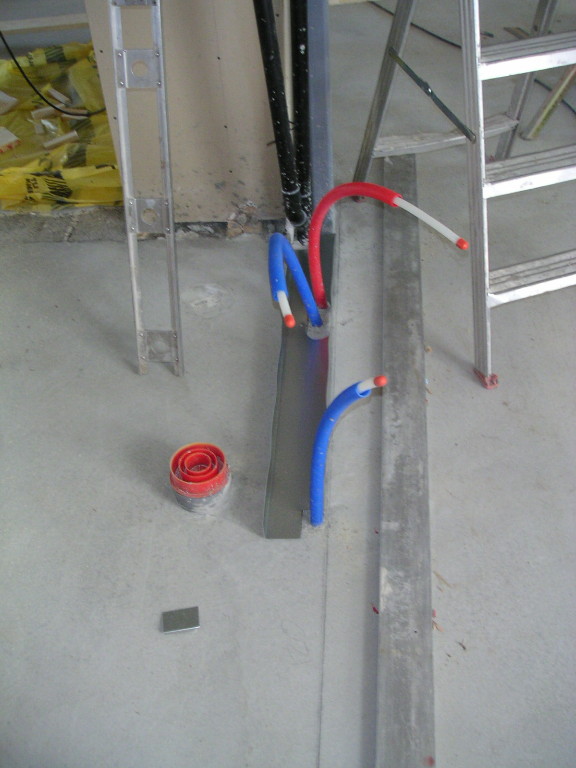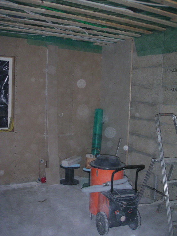 Mellanväggar. Denna får en metallprofil under då man inte kunde borra i plattan här på grund av alla rör.