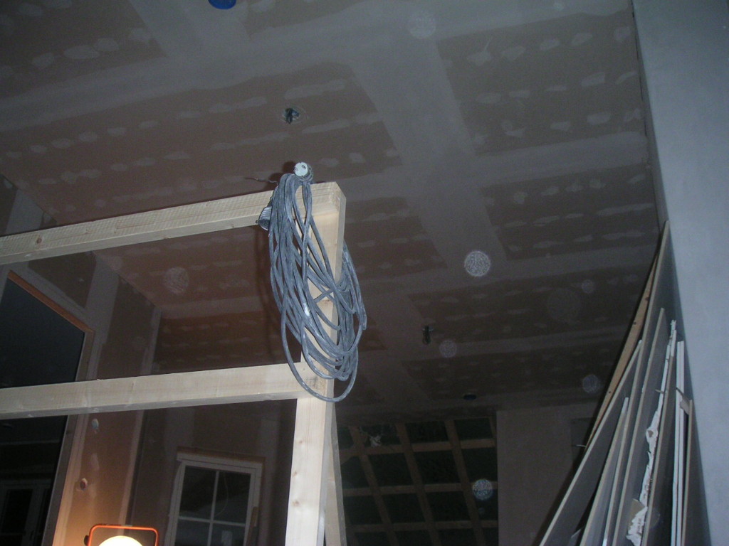 Innertak på våning 2 spacklade. De grundmålades sedan måndag-tisdag.