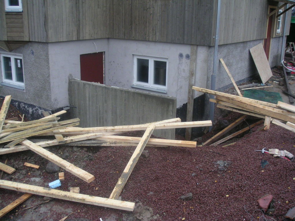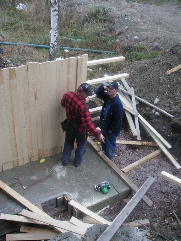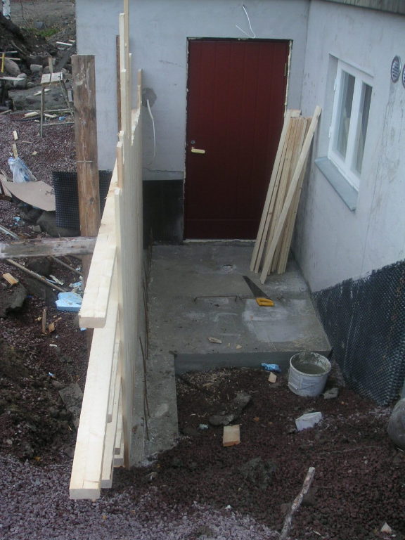 Källartrappans stödmur och stödmuren gjutna och allhelgona tillbringades med att riva formarna och stapla formvirket i prydliga staplar, efter att alla spikar (nästan) dragits ut.