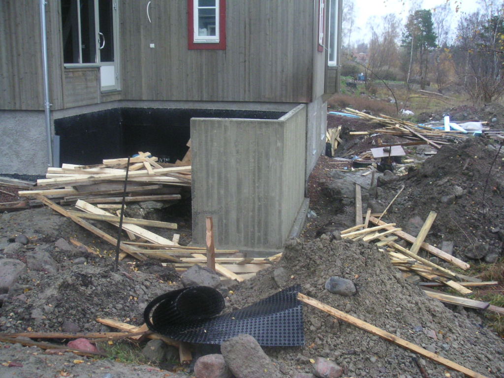 Källartrappan gjöts 2003-10-27. Resten byggs i trä.