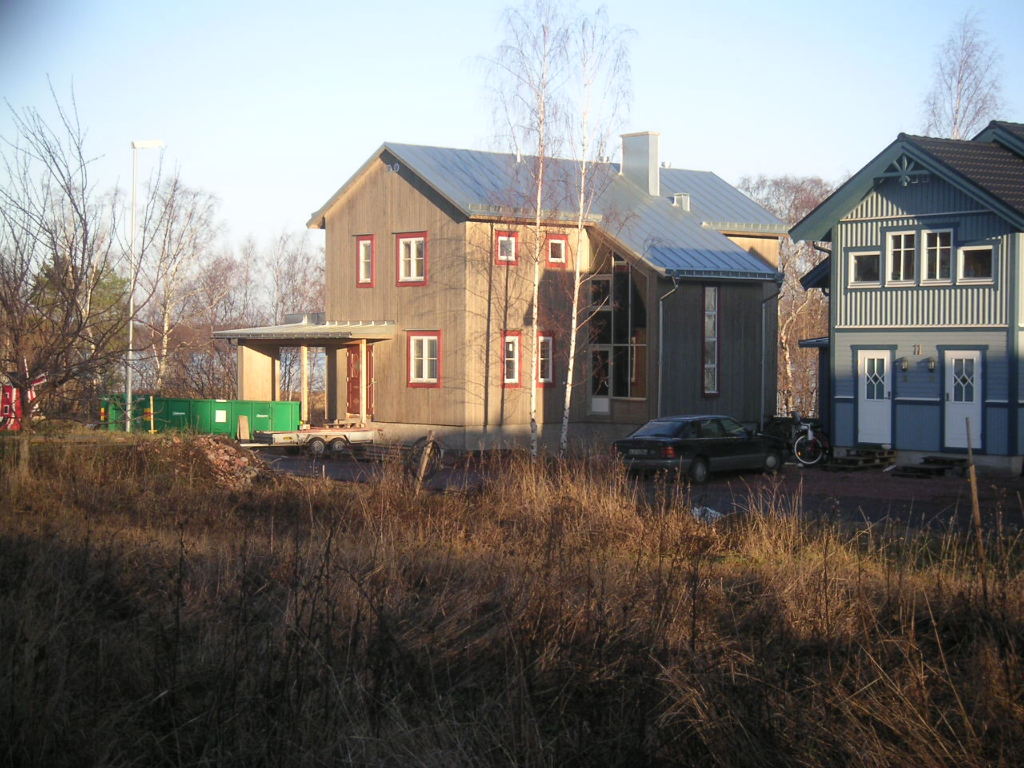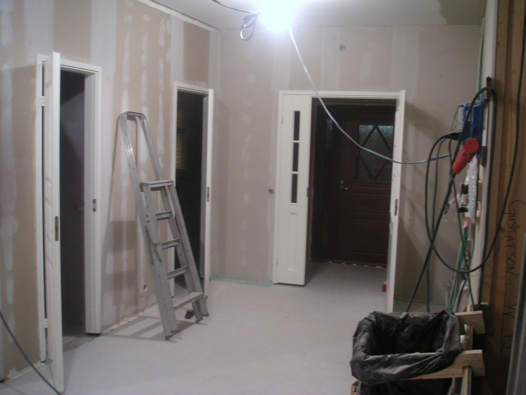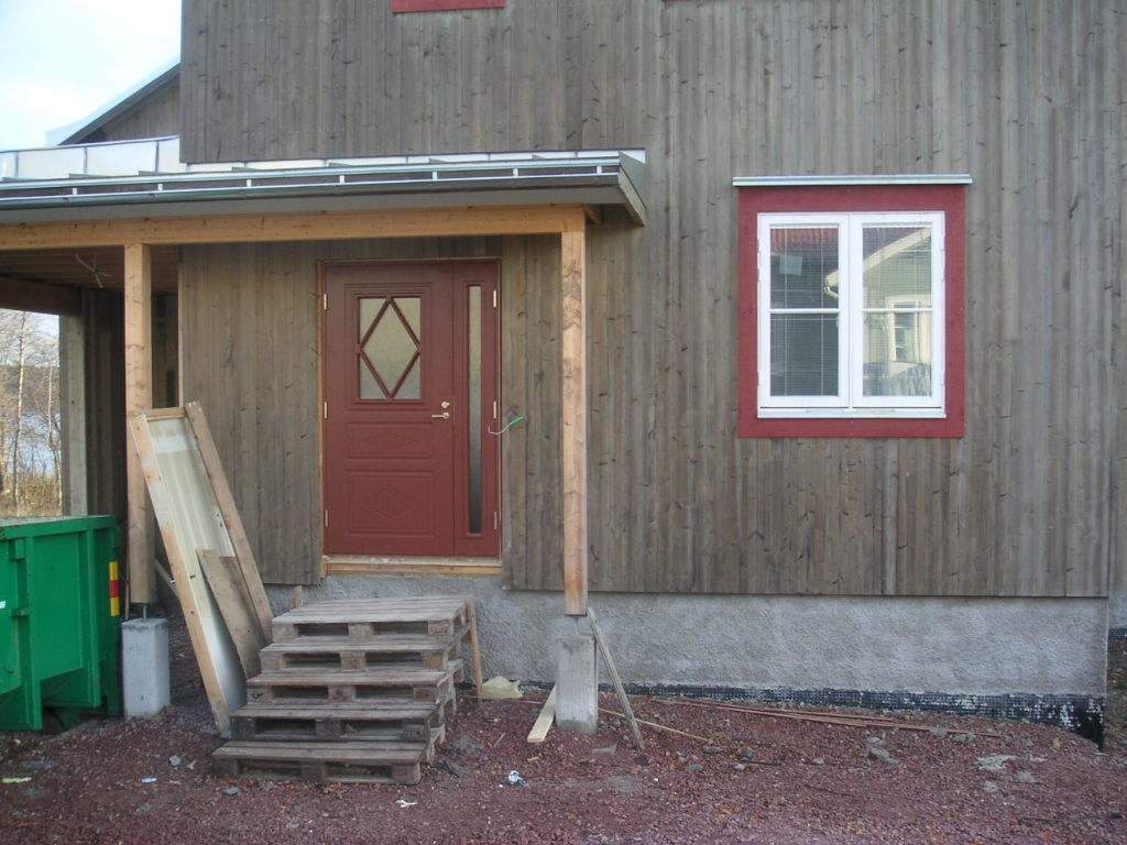 Ytterdörren sattes på plats 2003-11-19. Skönt att bli av med den fula byggdörren.