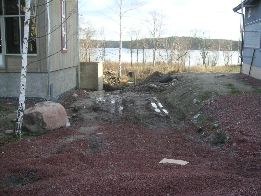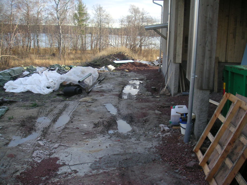 Vår "gräsmatta". Skall fyllas upp en del för att komma i höjd med gatan.