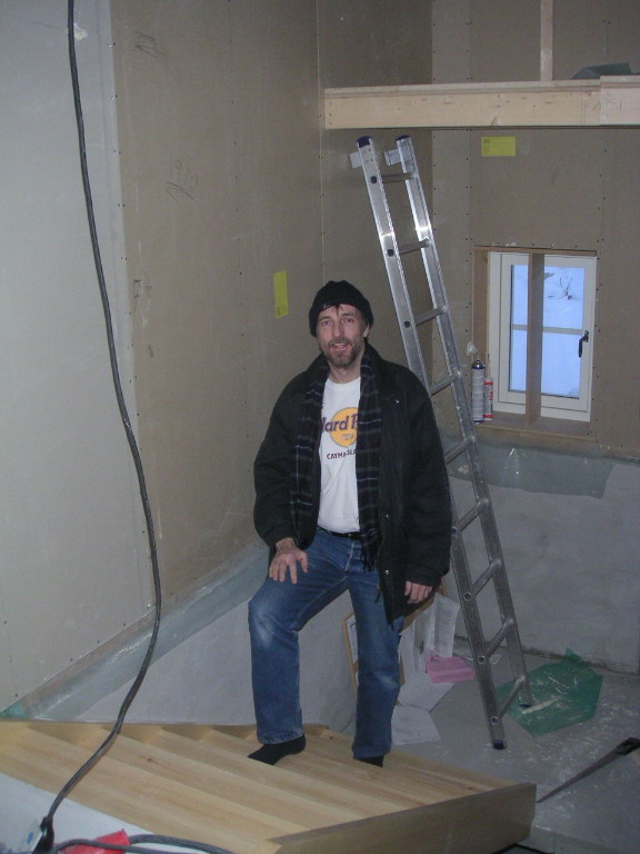 Our Christmas-present: The carpenters showed up, because bad weather stopped them from working outside, to install the staircase.