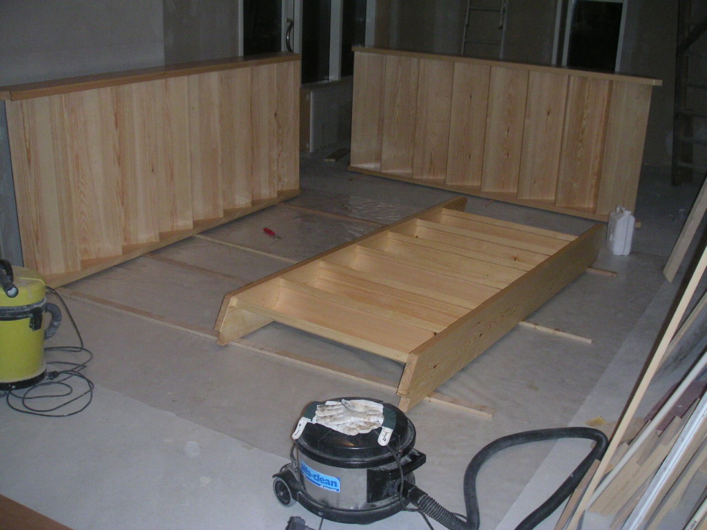 Staircase is being varnished. The final coating will be made when the staircase in in place.