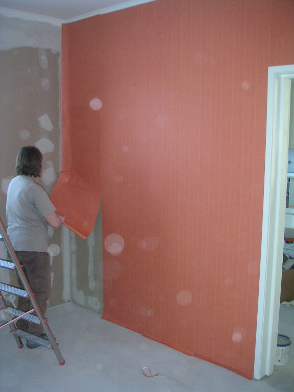 Bosse tapetserade nedre våningen och vi övre våningen.