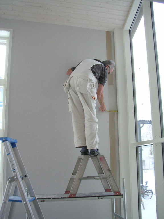 This is Bosse who painted the roof and window-sills and put up wallpaper on the ground floor..