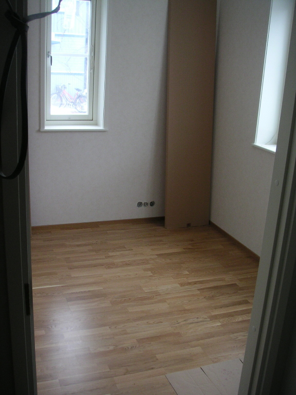 Annis rum och sovrummet fick sin parkett. 14mm tarkett, ek.