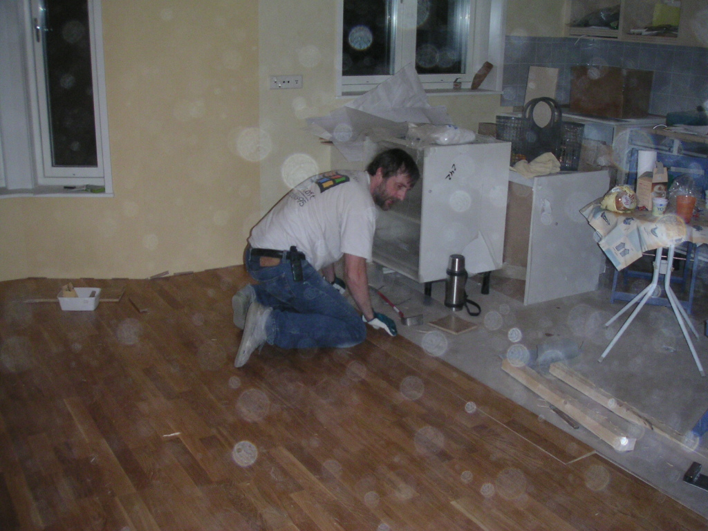 Started laying parquet in the hall/dining-room. The room is 12m (36ft).