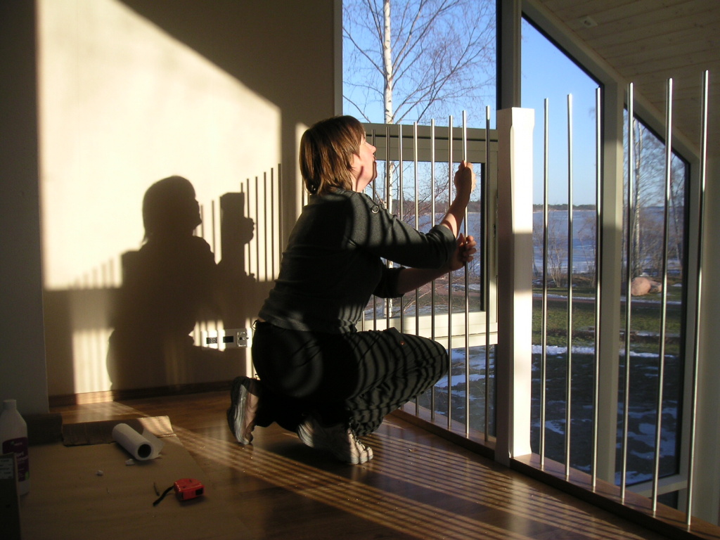 Södra räcket. Luftigt, men inte precis barnvänligt. DEt var en del borrande och pillande för att få ihop allt och ett ändlöst mätande.