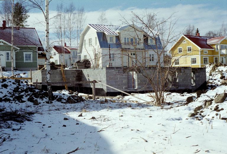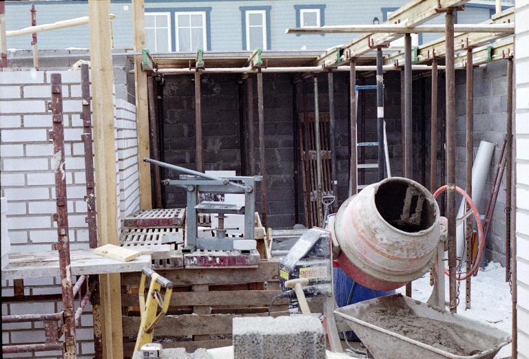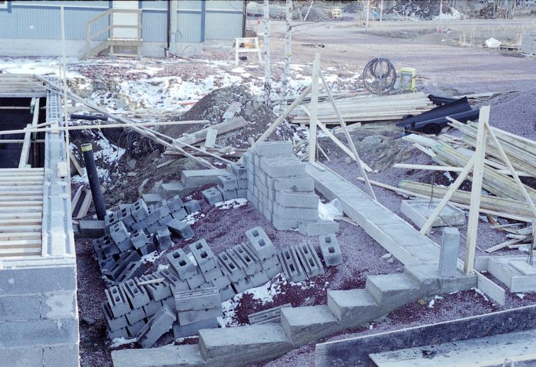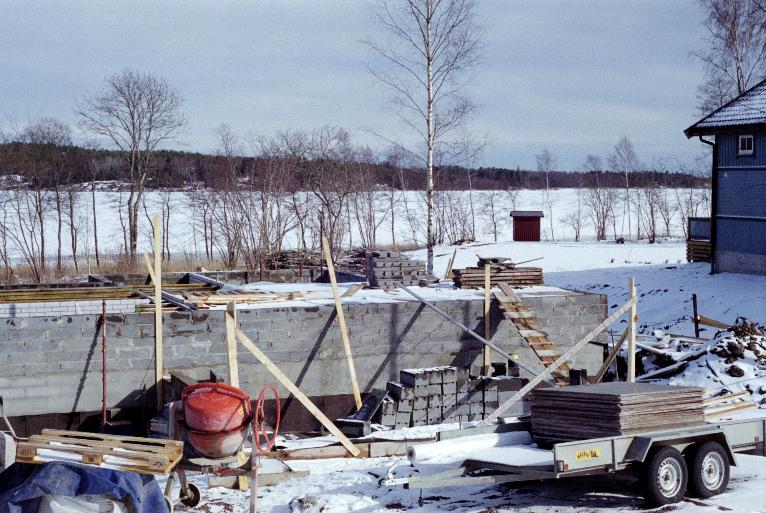 Cellar almost done. Note snow on the ground and that the sea is still iced-over.