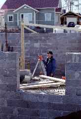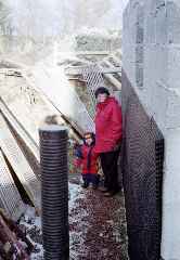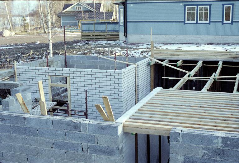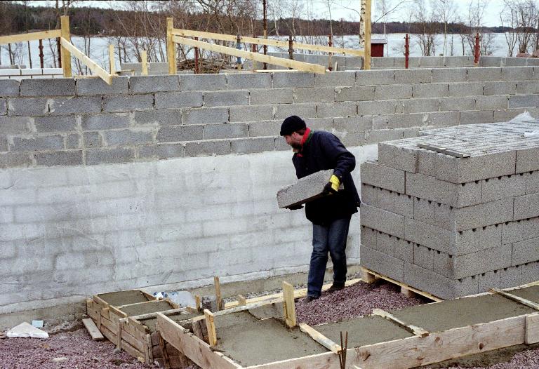 På bilderna ovan ser du byggherren i aktion med att trava Lecablock samt en vy av källaren.
