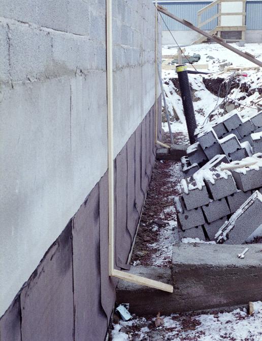 Gunther mäter samt detalj av fuktisoleringen.