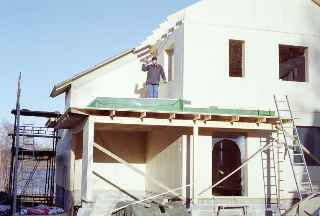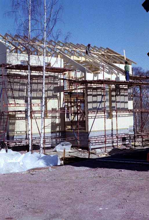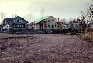 Ovan ser du huset från nordväst, med byggherren själv på balkongen.
