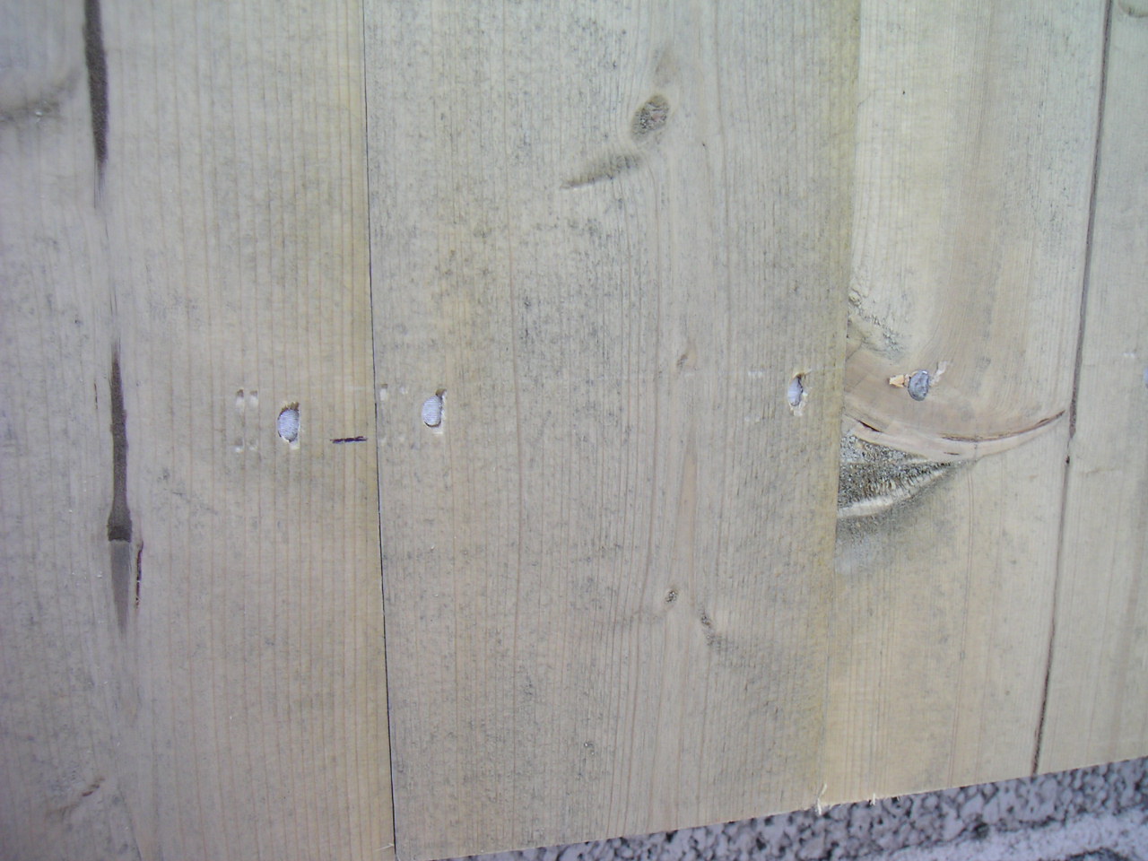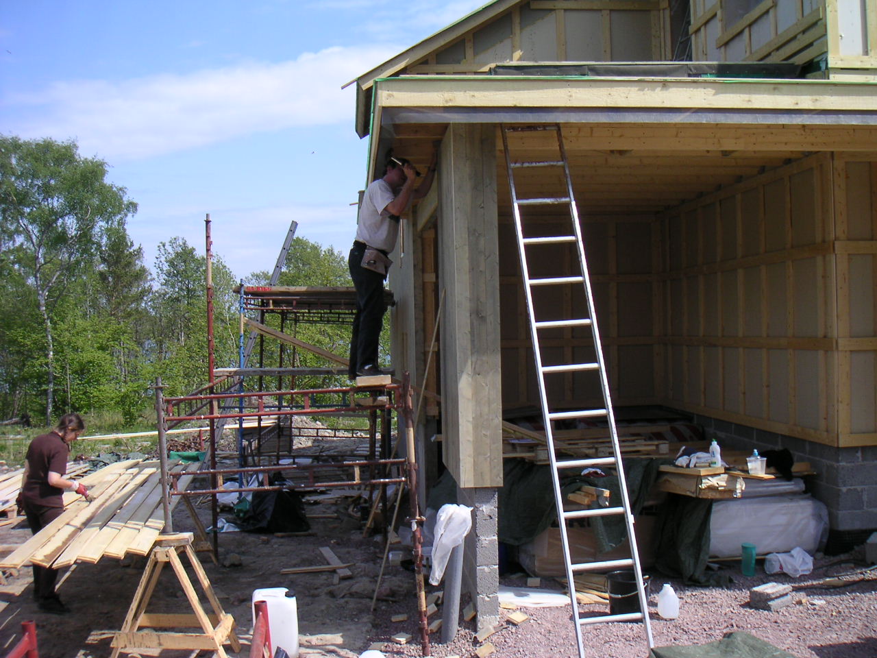 Problemet med att skjuta fast panelen med spikpistol är att det blir gropar som samlar vatten, vilket kan leda till röta. Byggarna var inte speciellt intresserade av att spika för hand så därför fick byggherre och -dam rycka in med hammaren.