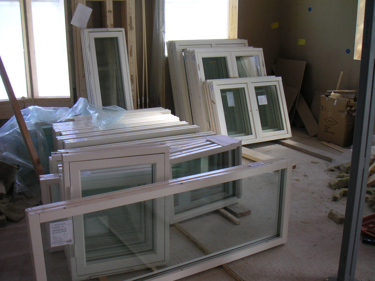 På fredagen anlände även fönstrena. Sidohängda, utåtgående, 2+1 med fast spröjs på de öppningsbara fönstren.