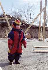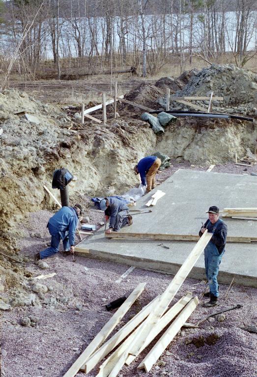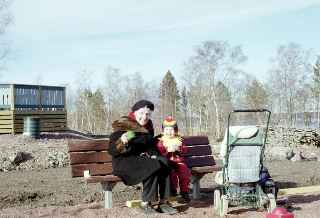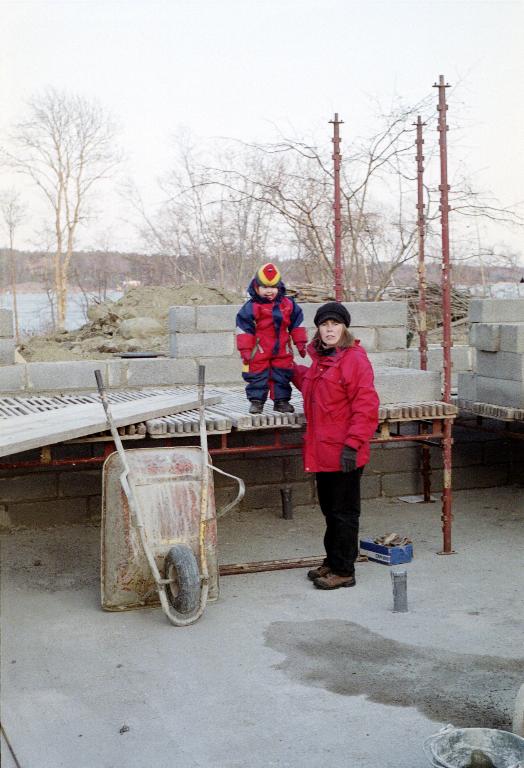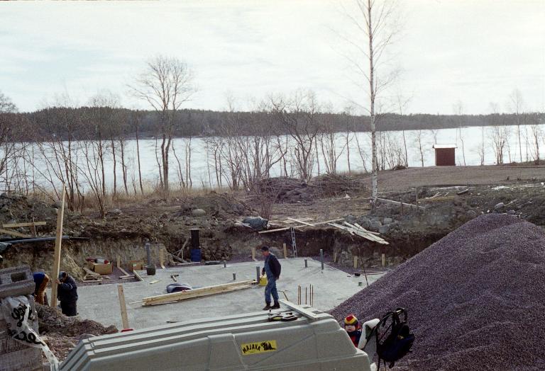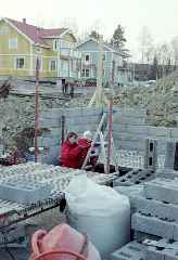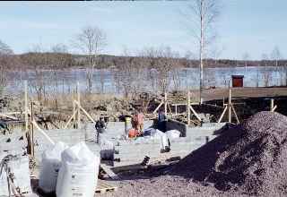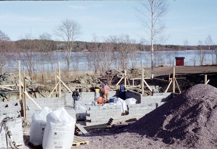 På bilderna ovan ser du källarväggarna halvfärdiga samt Anni och Ulla-farmor som fikar på lekplatsen med bygget i bakgrunden.