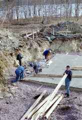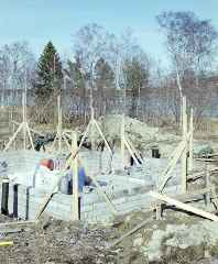 Ovan ser du hur byggarna reser jiggarna som skall gör att huset blir rakt.