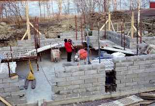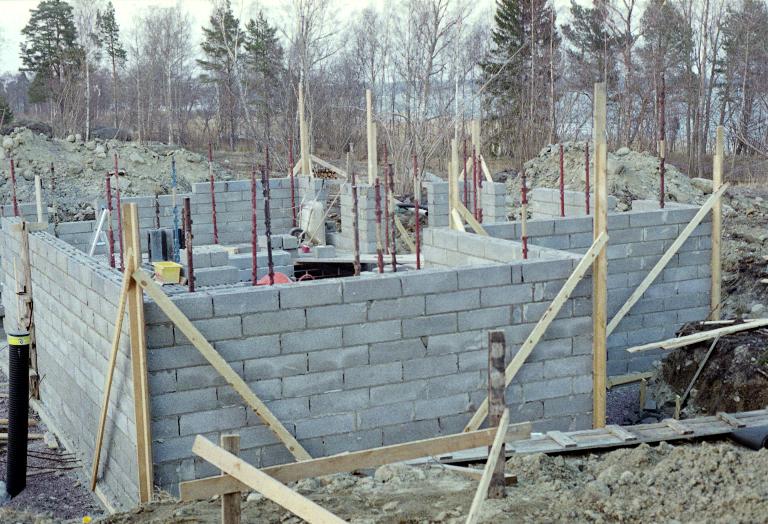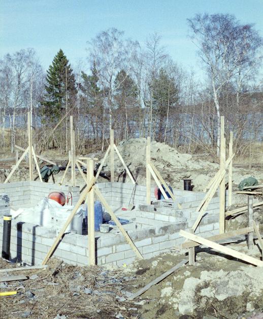 Sista varvet leca-block. Notera gjuten förstärkningsbalk på västra väggen